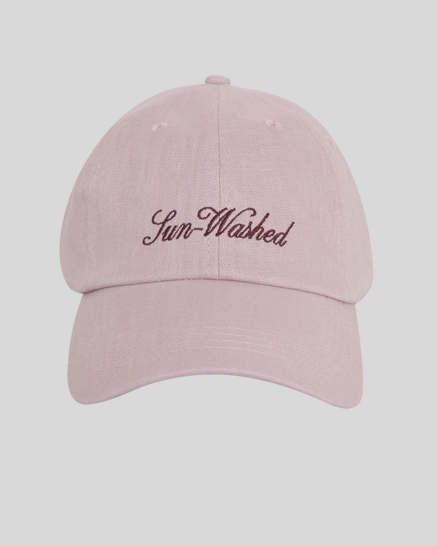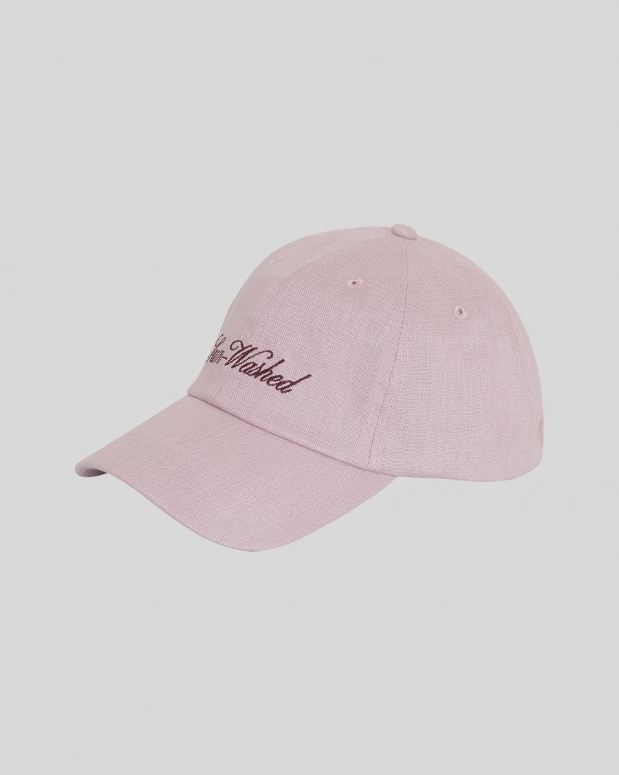 Linnen pet met gebogen klep. Ontworpen met zes panelen en ventilatiegaatjes. Verstelbare achterband met metalen gesp. Geborduurde tekst aan de voorkant.