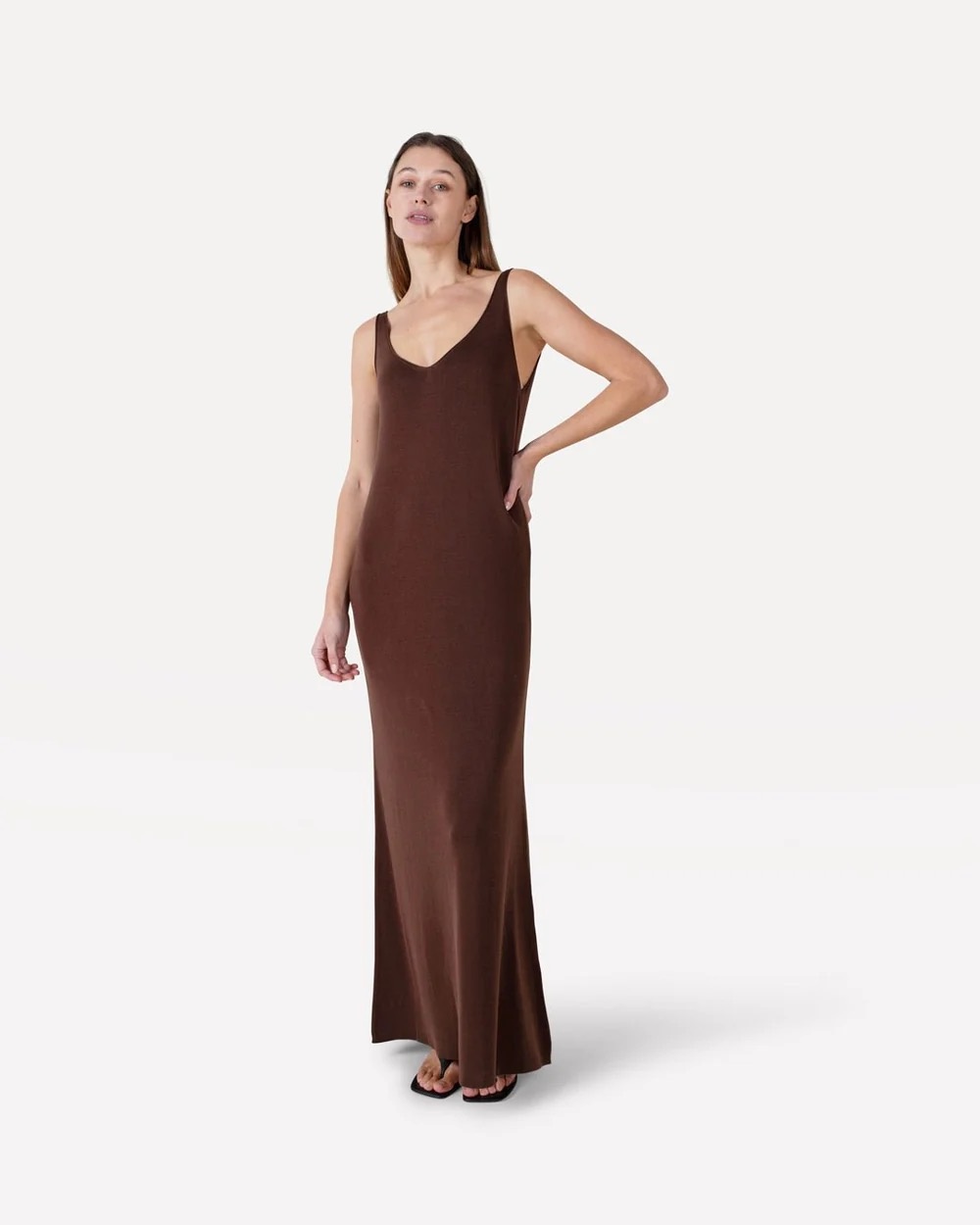De Cosette gebreide jurk is zacht, soepel en moeiteloos elegant. Gemaakt van 100% lyocell, valt de jurk prachtig in een lange, losse pasvorm die er net zo goed uitziet als hij aanvoelt. Minimalistisch, verfijnd en gemakkelijk te dragen.