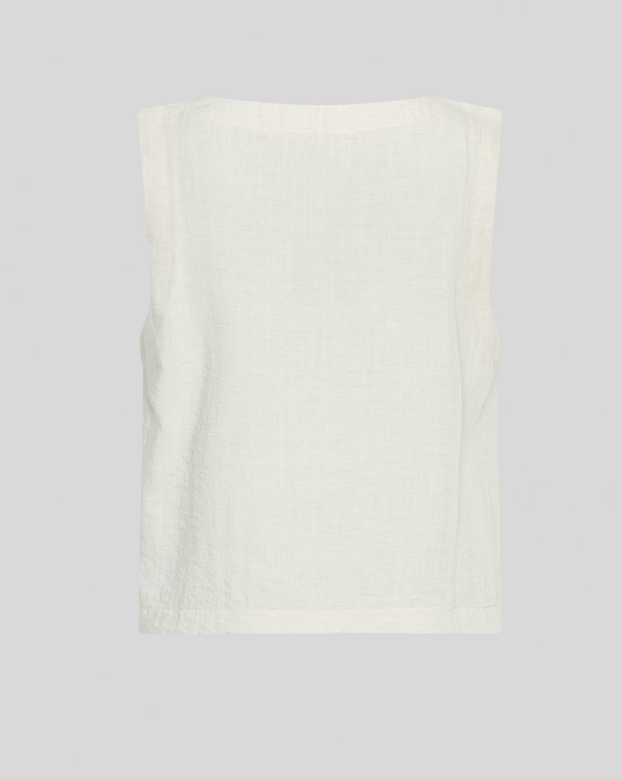 Mouwloos shirt van lichtgewicht geweven kwaliteit. Ontworpen met een V-hals en knoopsluiting aan de voorkant. Rechte snit met een subtiele stofstructuur. 81% LENZING™ ECOVERO™ Viscose, 16% Polyamide & 3% Linen
