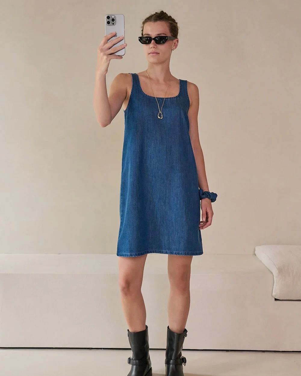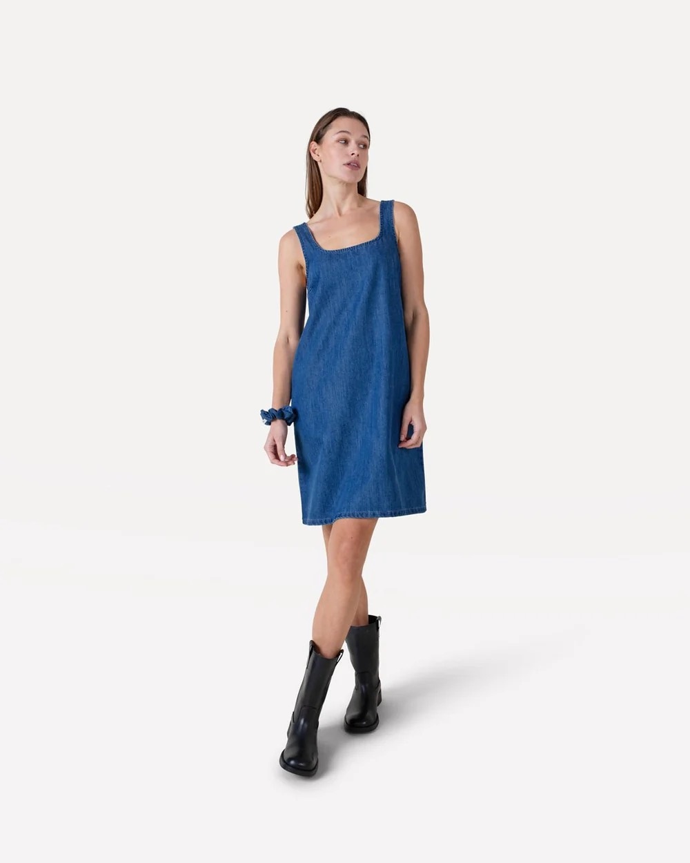vierkante halslijn uit zachte lyocell denim en voelt soepel aan