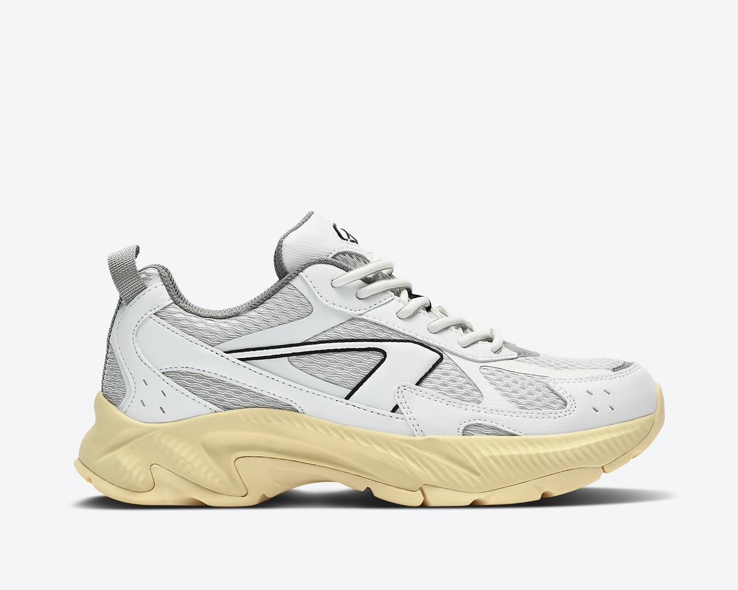 Ademend mesh met golfpatroon met duurzaam veganistisch leer. Kenmerkende zool, uit schokabsorberende EVA-middenzool voor extra comfort en een duurzame rubberen buitenzool voor ondersteuning & stabiliteit de hele dag.