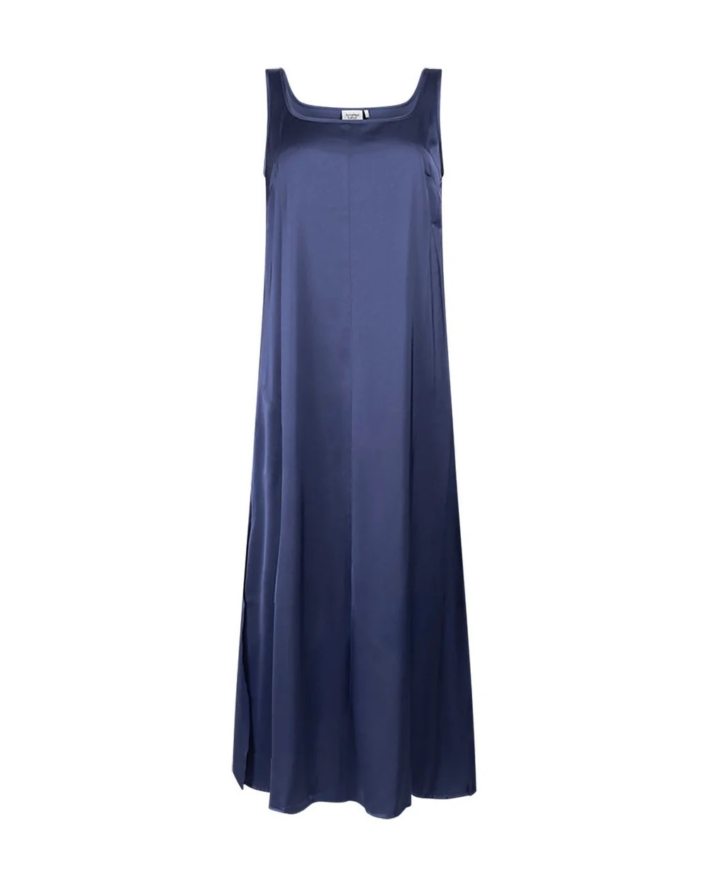 Elegant en soepel van structuur, A-lijn model, vierkante halslijn en split aan de voorkant. De glanzende viscosemix zorgt voor een subtiele glans. 52% Polyester, 48% Rayon