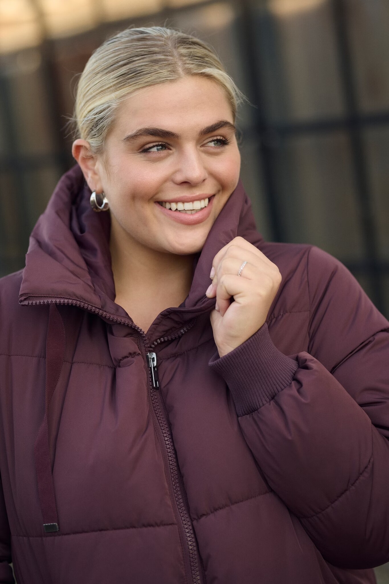 Lange pufferjas, relaxte pasvorm, volledige ritssluiting aan de voorkant, een ruime capuchon en geribbelde manchetten. Zijzakken en horizontale quilts voor warmte en comfort de hele dag.