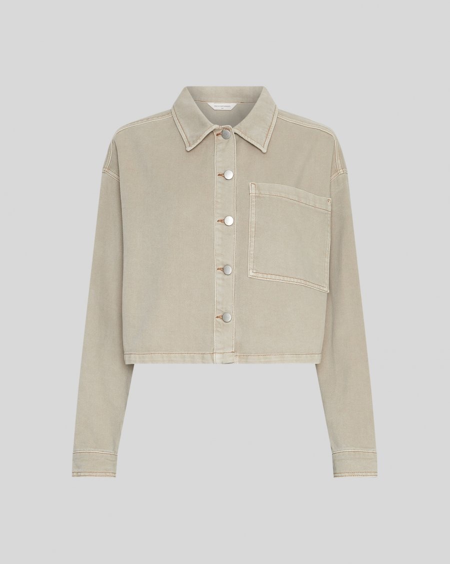Lichtbeige spijkerjasje met een klassieke kraag en knoopsluiting aan de voorkant. Voorzien van een grote borstzak en lange mouwen met manchetten met knoopjes. Recht model met een gestructureerde afwerking.