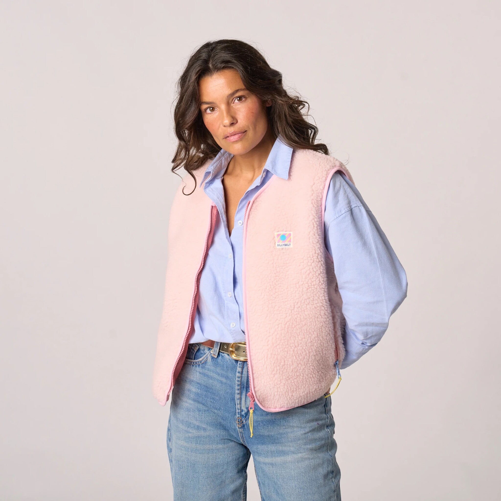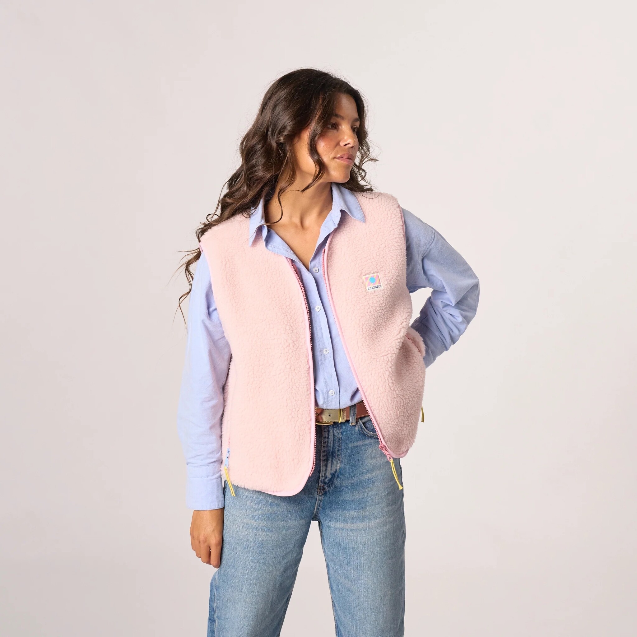 Sherpa jack met rits van gerecycled polyester. Mouwloos, ademend en praktisch met zijzakken