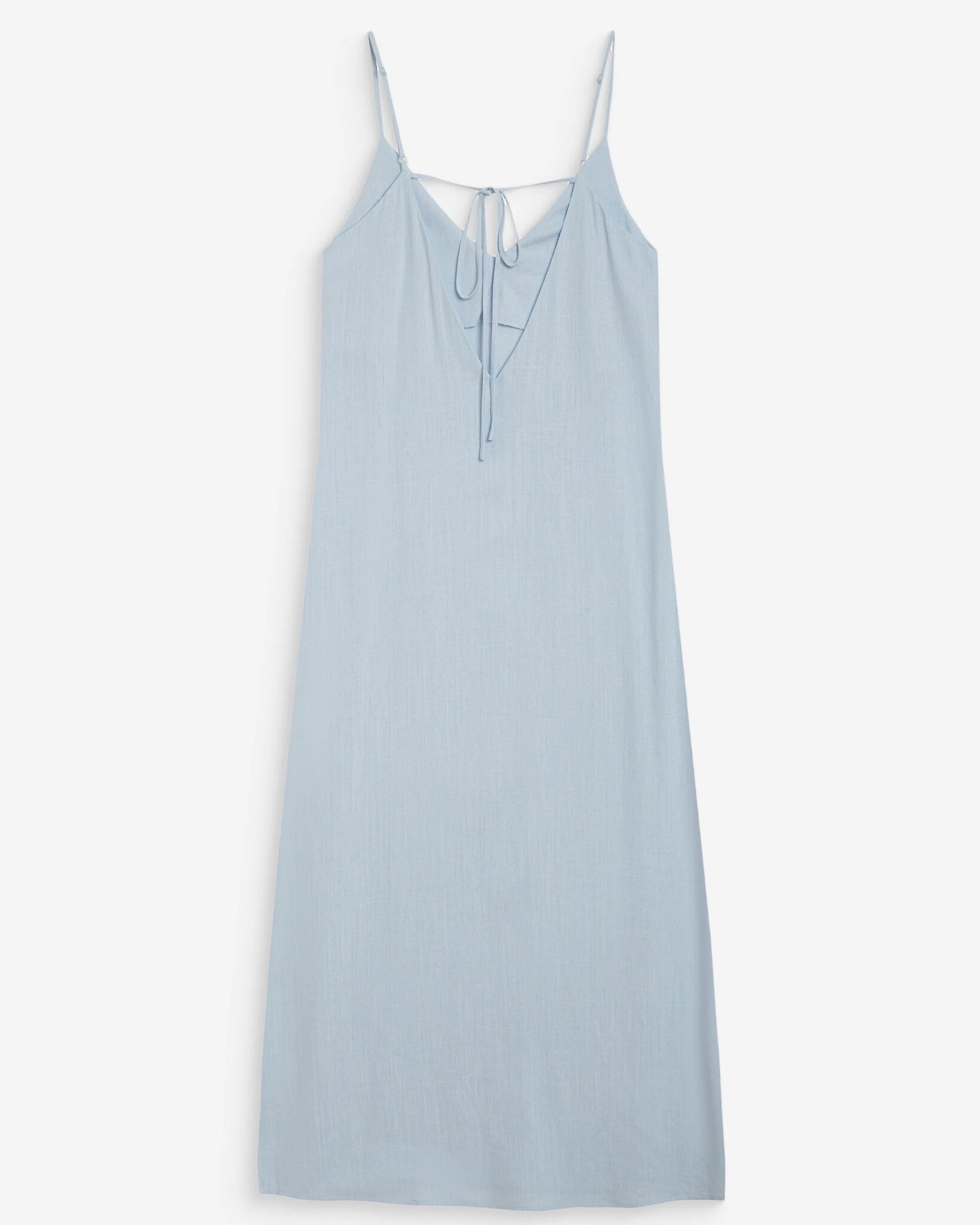 De WENDRA maxi-jurk is gemaakt van een linnenmix en straalt minimalistische elegantie uit. De strakke lijnen van het ontwerp worden benadrukt door een strikdetail op de rug, een V-hals en dunne bandjes die een verfijnd silhouet creëren.