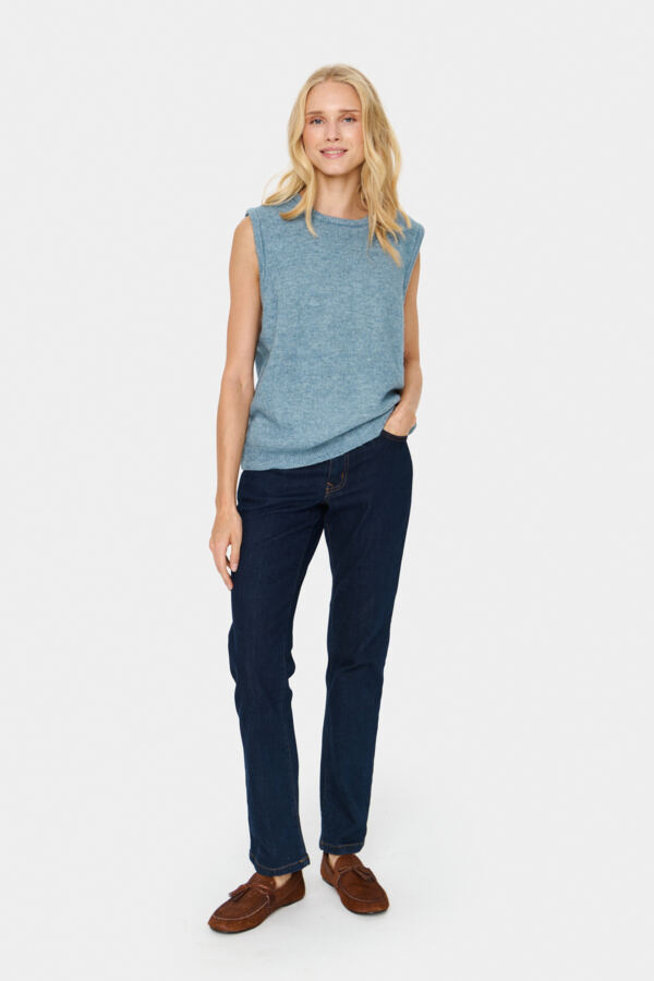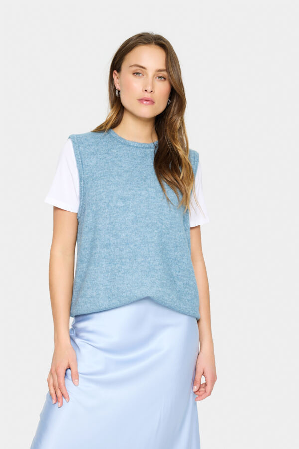 Gebreide vest, relaxte pasvorm, een klassieke ronde hals en een mouwloos ontwerp voor comfort de hele dag.